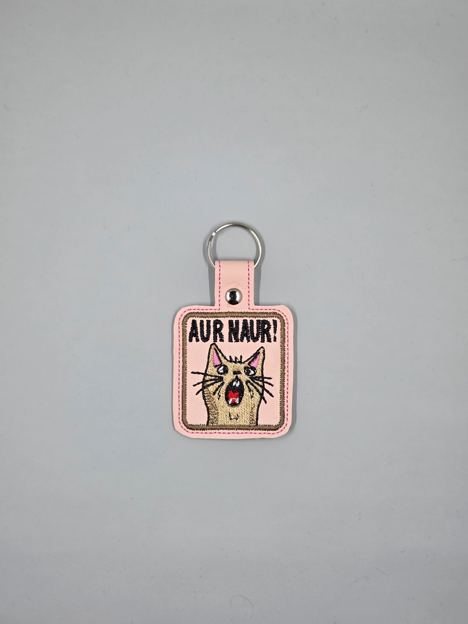 “Aur Naur!” Embroidered Cat Keychain | Funny Vinyl Cat Lover Keychain