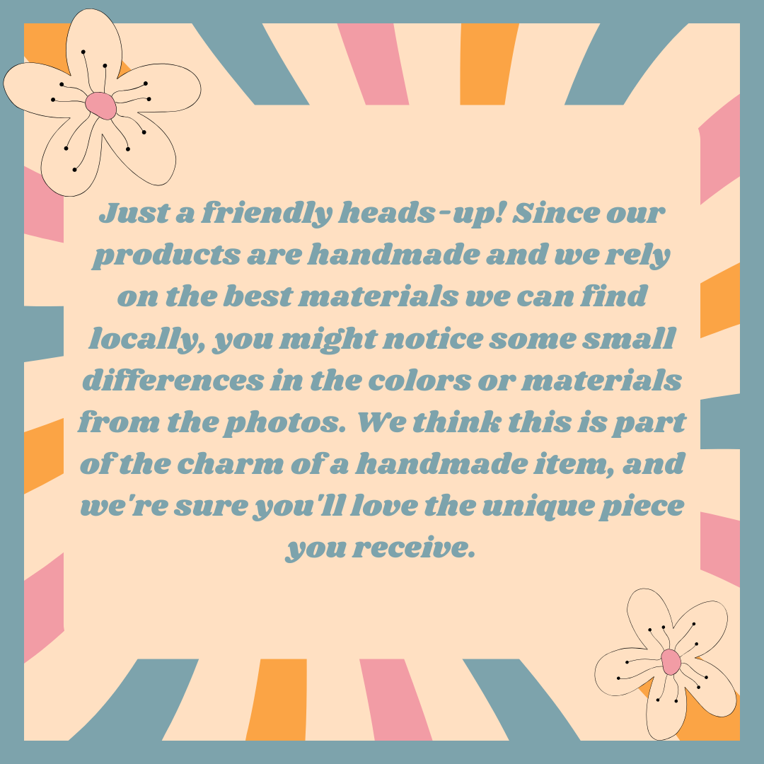 Colors and thread shades may vary slightly based on available materials