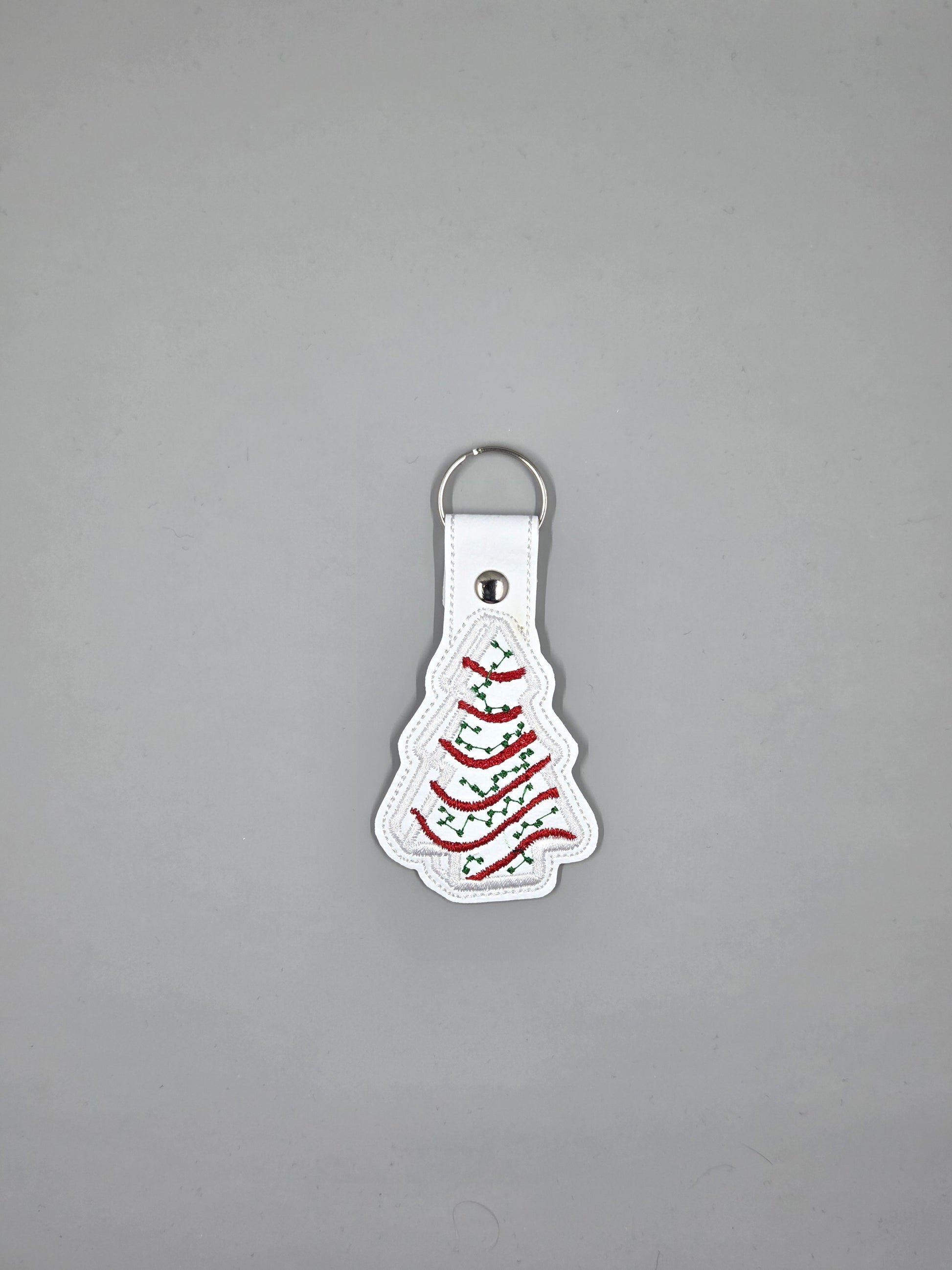 Christmas Tree Cake Embroidered Keychain | Vinyl Holiday Keychain