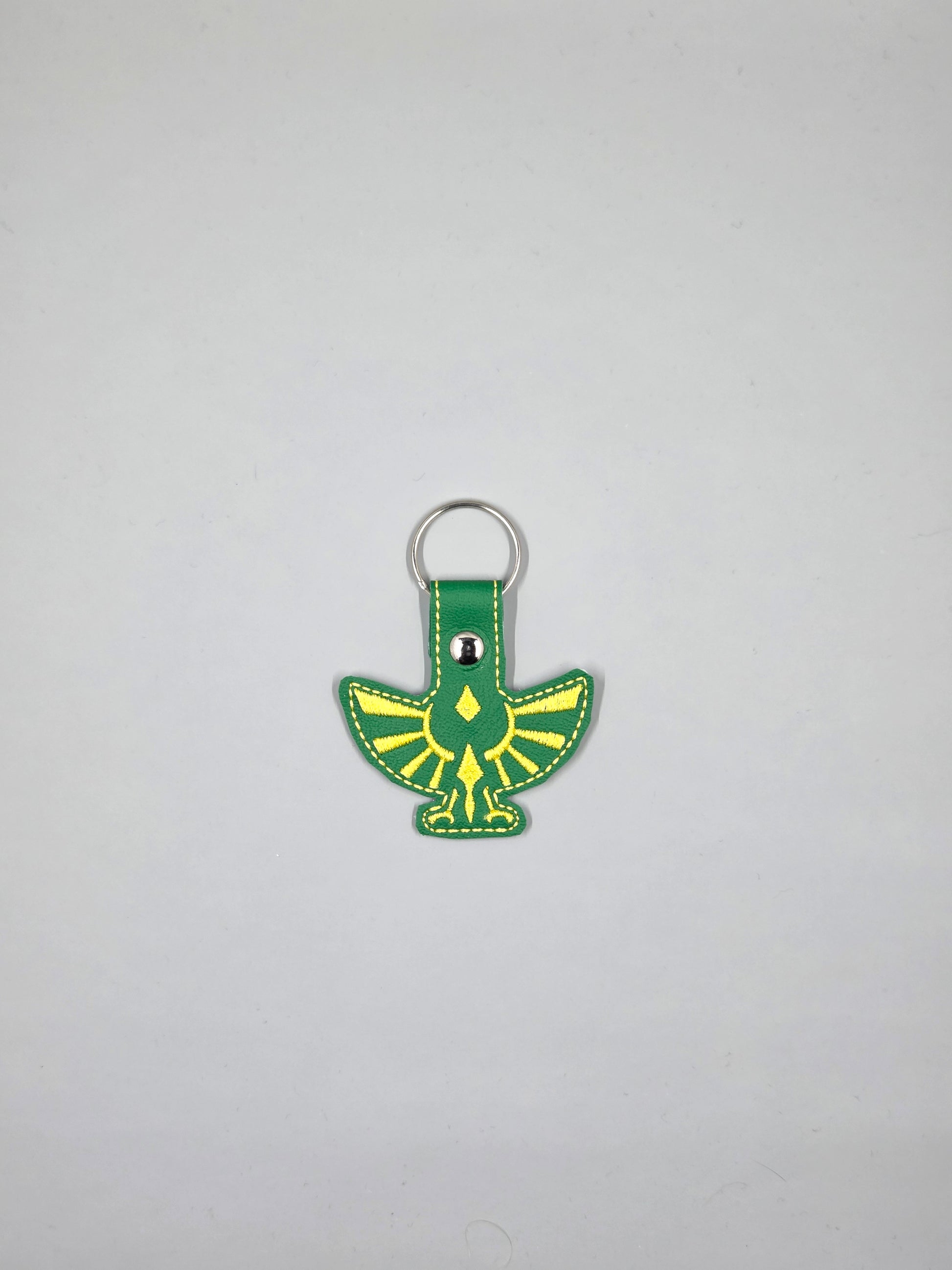 Carry the spirit of adventure wherever you go with this Hylian Crest embroidered vinyl keychain! Featuring the iconic green and gold crest design, this handmade keychain is perfect for fans of epic quests, legendary heroes, and timeless fantasy worlds.