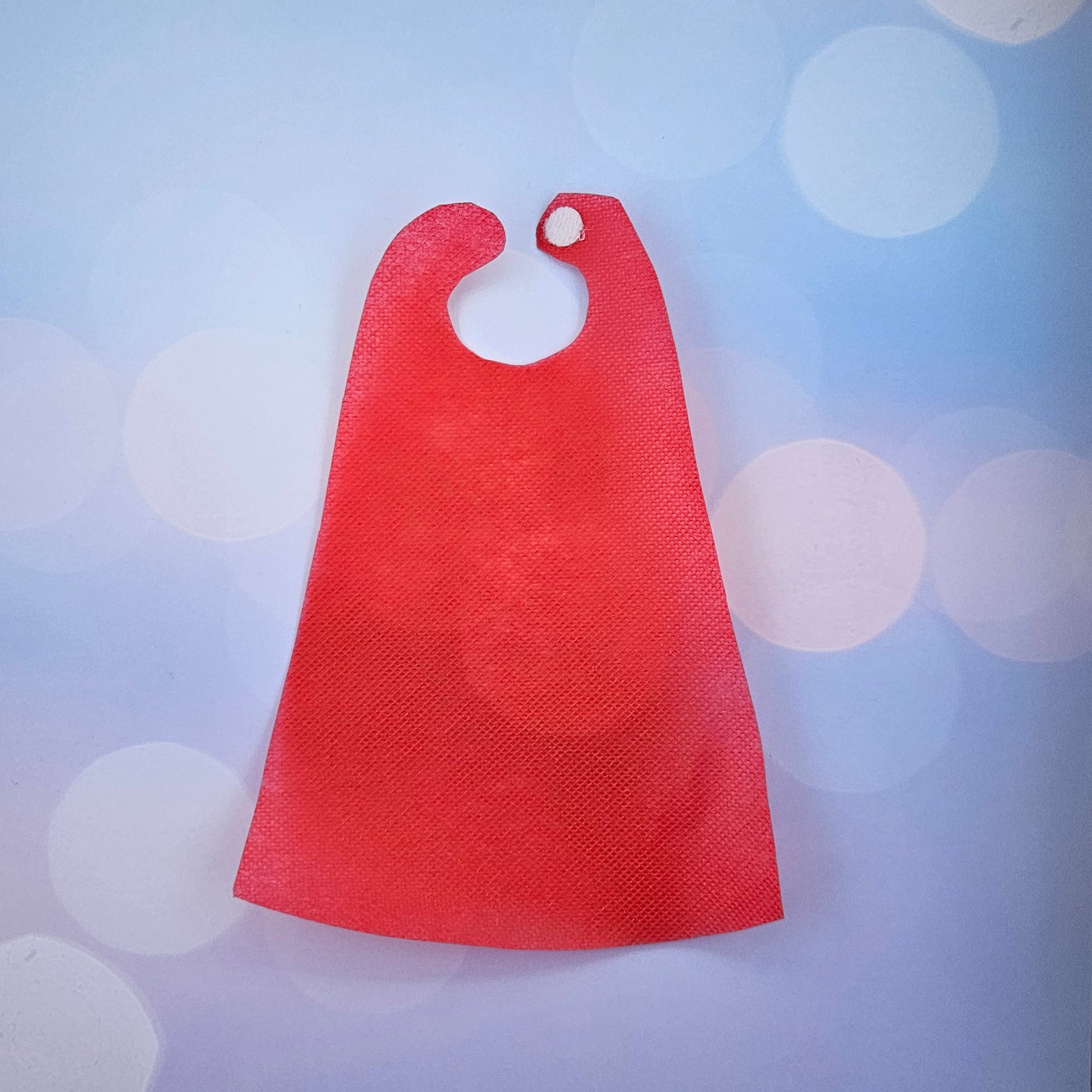 Includes blue fleece sweater with embroidered hero emblem and detachable red cape