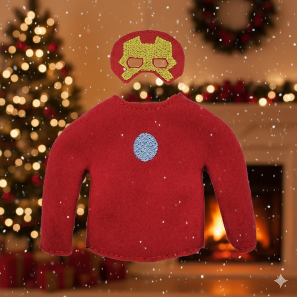 Red Iron Hero Elf Costume – Super Elf Suit with Mask