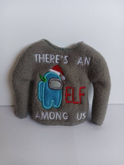 The Suspicious Crewmate Astronaut Embroidered Elf Sweater brings space-age fun to your elf’s holiday missions. Whether your elf is venting around the tree, completing tasks in the workshop, or just being a little sus, this cozy fleece sweater is the perfect pick for game-loving families.