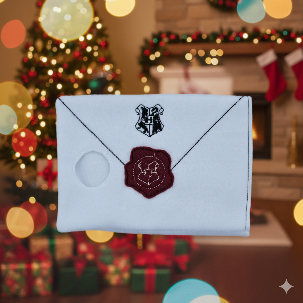 Get your elf ready for magical delivery duty with the Wizard School Letter Elf Costume! This enchanting fleece outfit turns your elf into the most charming piece of post ever — complete with a stitched wax seal and embroidered crest. Whether your elf is delivering holiday magic or waiting on their own acceptance letter, this outfit brings a touch of wizarding wonder to your Christmas display.